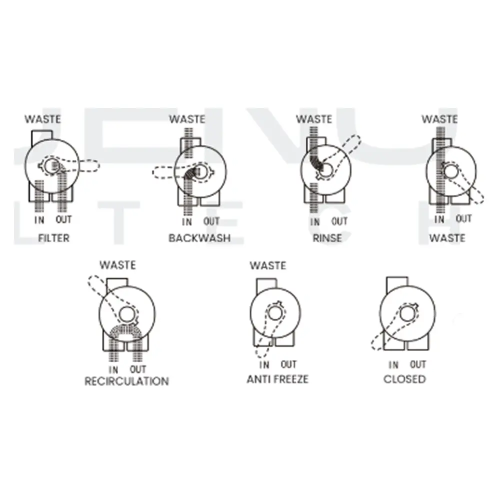 The PV01-1/PV02-2 Series top-mount multi-port valves are engineered to provide reliable, user-friendly control for pool sand filters. These valves feature a top-mounted configuration that allows for easy access and operation, making filter maintenance and mode changes simple and convenient. Constructed from high-quality, corrosion-resistant materials, these valves are built to withstand continuous exposure to pool chemicals and outdoor weather conditions. The multi-position design typically includes essential operating modes such as Filter, Backwash, Rinse, Waste, Recirculate, Closed, and Winter positions, giving pool operators complete control over their filtration system. The PV01-1 model features a 1.5-inch connection, making it ideal for smaller to medium-sized residential pool filters, while the PV02-2 model offers a 2.0-inch connection for larger residential and commercial applications requiring higher flow rates. Both models feature clear position indicators and smooth, easy-to-operate handles for effortless mode selection. The valves are designed for direct mounting on top of compatible sand filters, simplifying installation and reducing plumbing complexity. Compatible with standard pool filter systems, these valves provide years of reliable service with minimal maintenance requirements.